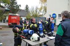 Hierbei mussten die Stationen richtiges Ausrüsten im Fahrzeug, Personensuche in einem verrauchten Raum inkl. Richtigem vorgehen und Gefahrenerkennung, Menschenrettung aus dem verrauchten Raum, Hindernisparcours auf ca. 50 Meter Länge mit einer C-Löschleitung und Fragen über das Atemschutzwesen richtig und unter vorgegebener Zeit absolviert werden.