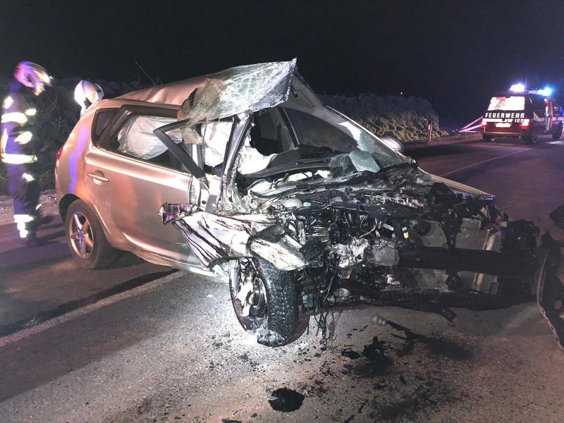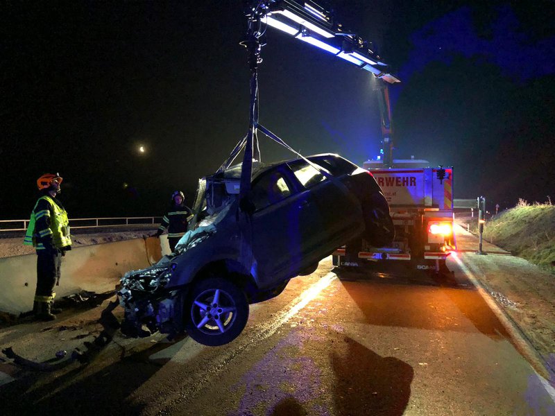 Der Fahrer des Personenkraftwagens war zu diesem Zeitpunkt im Fahrzeug eingeklemmt.